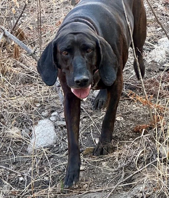 In 2019, Daisy, a Plott Hound, joined the Gastelum family. As Daisy grew older, she developed anxiety and often refused to leave the house for walks or car rides. After working with a skilled trainer, Daisy now willingly goes outside and even enjoys frequent trips to the countryside to run with her canine companions. Daisy’s journey is what inspired Jennifer’s passion for dog training and her desire to help dogs live their best lives.